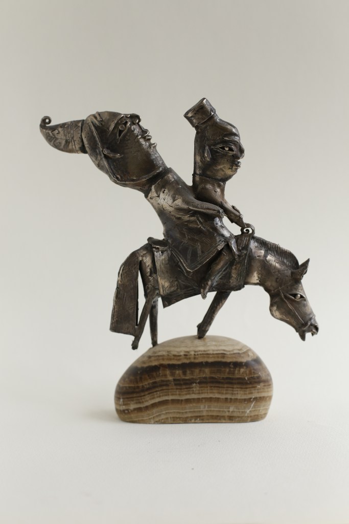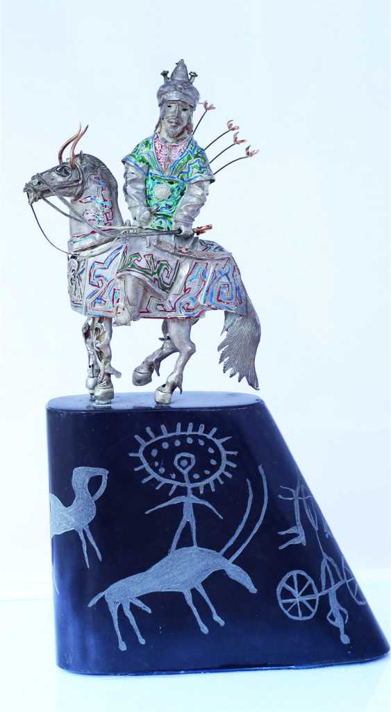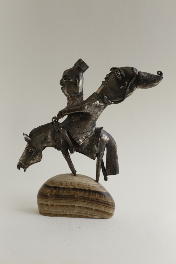 “Swing” bronze, wood 2010 500×300 mm “The Ark” bronze, wood 2011 300×150 mm «Nauryz» bronze, wood 2011 350×350 mm “Seated” bronze, wood 2011 300×150 mm “Horseman” 45 steel, casting 1992 400×350 mm “Horseman” 45 steel, casting 1992 400×350 mm “The Abduction of Asia” silver 2009 200×200 mm «Attila» silver 2011 350×400 mm “Spirit of the Steppe” silver, granite 2011 300×200 mm “Before the Shot” silver, 2009 200×100 mm. “Memories of Years Past” silver, 2009. 200×100 mm. «Archi-Tek» silver, 2009. 200×50 mm. “Maturity” silver, 2009. 250×100 mm. “Totem Wolf” silver, granite, 2009, 180×350 mm“Hunter with a Golden Eagle” silver, 2009. 400×250 mm. “Temptation” silver, 2009. 400×150 mm. “Creation” silver, 2009. 250×100 mm. «Lying» metal, welding 2020. 400×100 mm. «Sitting» metal, welding 2020. 400×100 mm. “Sacrifice” copper, casting 2009. 250×250 mm. “Warrior” silver 2009. 300×200 mm.
